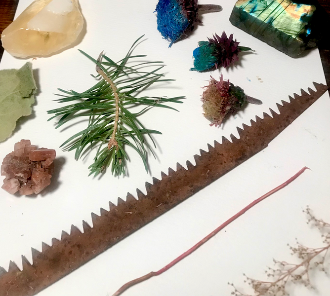 I chose colors and textures that felt like him. I used the shape of a miniature saw to shape the center of the painting. It was a purposeful choice, and more than a coincidence that I had just found the saw blade that day on my hike, because it was an exact replica of a larger saw that my grandpa chose to have a mural of St. David painted on. Through painting, I felt that Grandpa’s spirit came to life, and the once empty place in my heart was forever filled with joy. I felt that I could carry on the legacy in a way that felt right to me. Instantly, I knew that I was meant to paint for others, so they too can experience the light of joy that heals grief in the way that my grandfather’s painting did for me.
